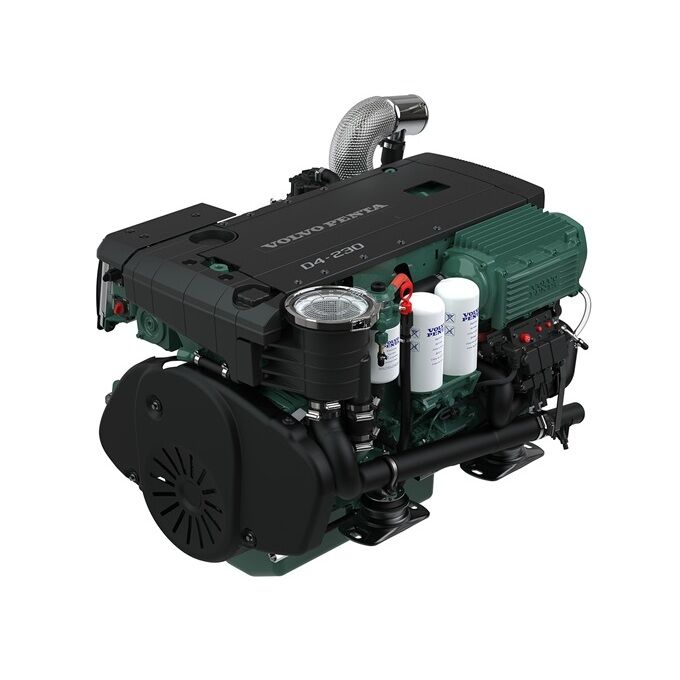 Volvo Penta D4-145 is an in-line 4-cylinder, 3.7-liter diesel engine using common-rail fuel injection, double overhead camshafts, and turbo. This contributes to outstanding torque during acceleration.